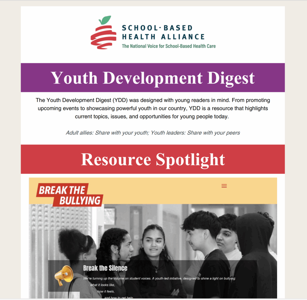 Youth development at SBHA aims to advance youth agency by fostering connections and developing leaders within the school-based health and education sectors. Our purpose, goals, and strategies build on the strengths and resilience of young individuals and encourage their holistic growth and well-being. Our expertise extends across the design, implementation, and evaluation of youth development resources and initiatives to foster positive systems change and equip youth with the necessary skills, knowledge, and resources to lead healthy and fulfilling lives.