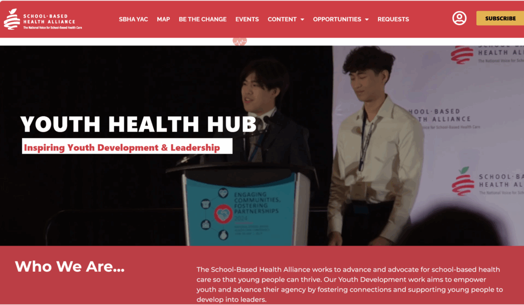 SBHA’s Youth Advisory Council is a youth-led service group, bringing students from across the country together with the goals of supporting youth development efforts, advancing health care access for their peers, and promoting health literacy to increase youth leadership in SBHCs.
